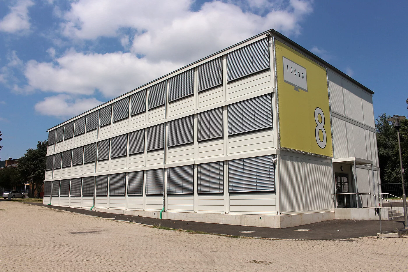 Diese dreigeschossige Containeranlage wird derzeit als Übergangslösung genutzt und bietet mit 285 Containern auf 5.041 Quadratmetern, einer großen Aula, zwei großen Schulküchen und zahlreichen Nebenräumen viel Platz. Die mobilen Räume können für Ihren Bedarf flexibel umgenutzt und versetzt werden.