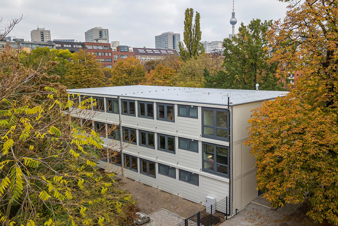 In unmittelbarer Nähe der City Grundschule in Berlin Mitte entstand ein Wohnbauprojekt mit 800 Wohneinheiten. Mit dem Bedarf an Wohnraum ging selbstverständlich auch eine erhöhte Nachfrage nach Kinderbetreuung und Bildung einher, die unter anderem von der City Grundschule abgedeckt werden musste. Dies führte schlagartig zu einem erhöhten Platzbedarf an der Grundschule in Berlin Mitte. In nur acht Wochen Bauzeit entstand aus 72 Containern der FAGSI Baureihe ProENERGY ein dreigeschossiges Schulgebäude mit insgesamt 1.370 qm Grundfläche. In den beiden Obergeschossen befinden sich insgesamt acht digitalisierte Klassenzimmer, die alle mit EDV Zugängen und Smartboards ausgestattet sind. Das Erdgeschoss bietet Raum für die Schulkantine mit Warmausgabe und Spülküche. Auch hierfür herrschte enormer Bedarf, da seit dem 01. Januar 2019 für alle Schülerinnen und Schüler in Berlin ein kostenloses Schulessen angeboten werden muss und auch rege in Anspruch genommen wird. „Dieses Projekt in so kurzer Zeit zu realisieren, war nur dank der langjährigen, guten Zusammenarbeit mit dem Bezirksamt Mitte und dem hohen Engagement des zuständigen Architekturbüro möglich“, schildert Erik Rafka, der das Projekt seitens des FAGSI Vertriebsbüros in Berlin begleitet hat. „Gemeinsam haben wir in kürzester Zeit ein Konzept entwickelt und eine Anlage schlüsselfertig innerhalb von 10 Wochen inkl. der Planung und Bemusterung mangelfrei übergeben. Wir konnten den EnEV-Nachweis, die prüffähige Statik, die Lichtberechnung, alle Grundrisse, Ansichten und Schnitte innerhalb kürzester Zeit zuarbeiten und damit den Prozess der Baugenehmigung extrem beschleunigen."