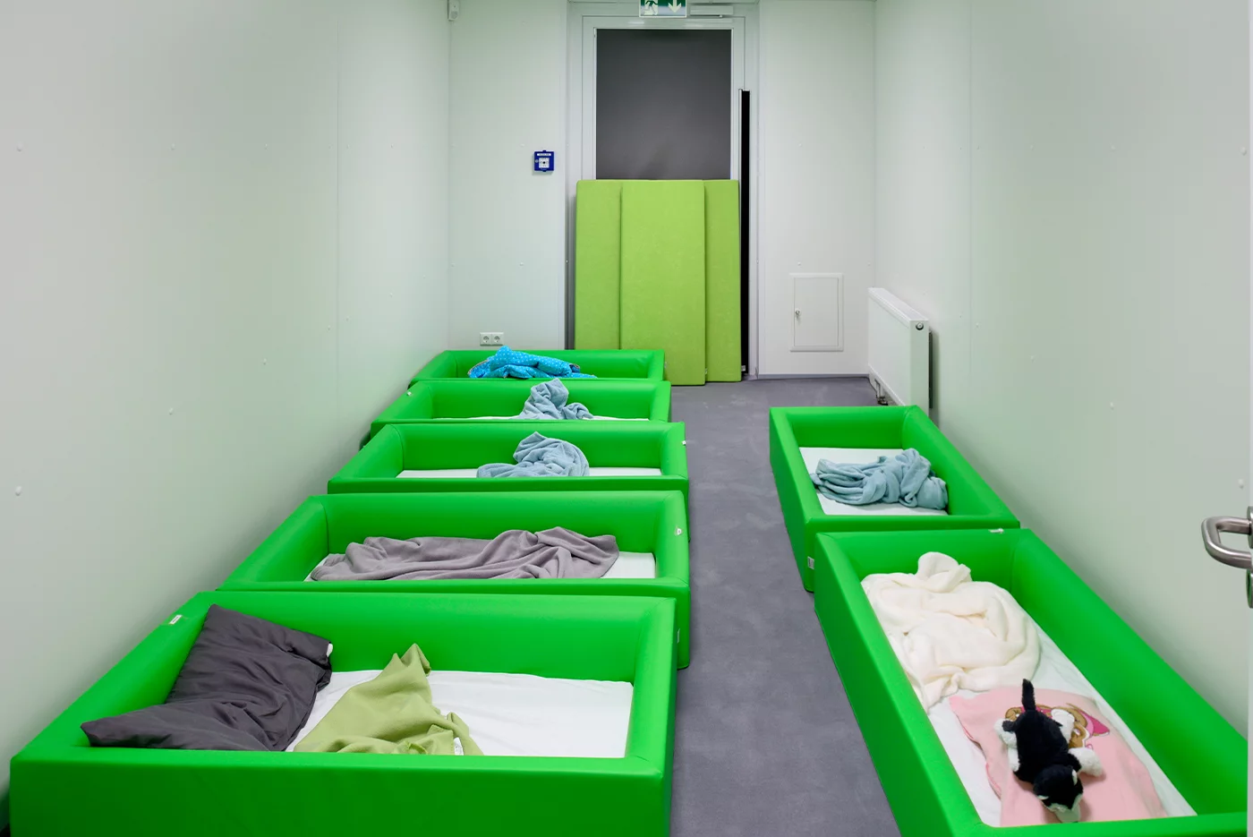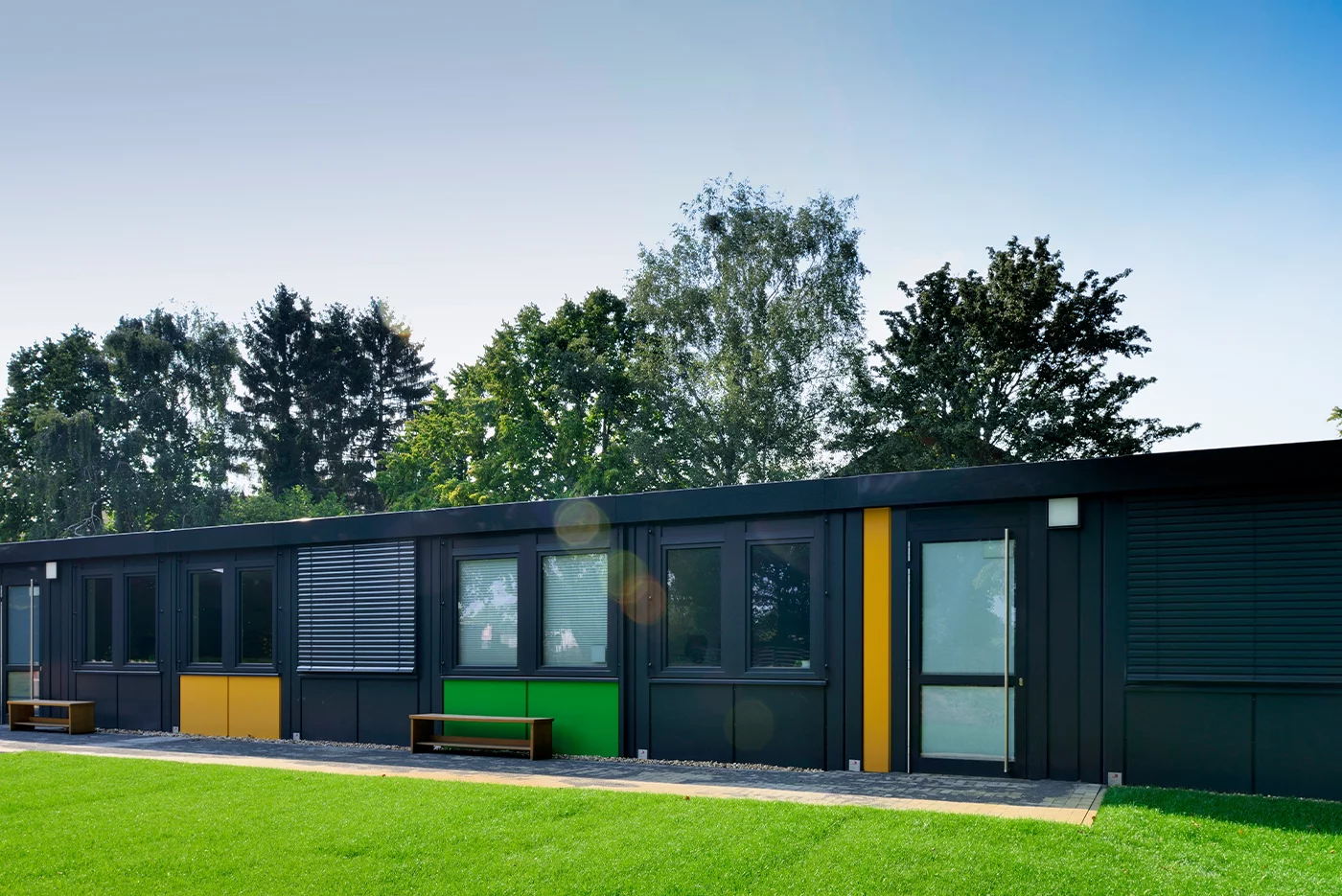 Mönchengladbach wächst und investiert u.a. in zusätzliche Kindergartenplätze: Acht neue Kitas sah die Bedarfsplanung der Stadt allein für das Kindergartenjahr 2018/2019 vor. Bis aber die Gebäude den Kindern tatsächlich zur Verfügung stehen, müssen hochwertige Übergangslösungen mit Kita Containern geschaffen werden. FAGSI hat darum im Auftrag der Stadt im Gebiet „Am Beekerkamp“ ein Interimsgebäude aus Mietcontainern „made in Germany“ realisiert. Um den Betrieb der Kindertagesstätte aufrecht zu erhalten, wurde FAGSI beauftragt, ein 730 Quadratmeter umfassendes Interimsgebäude zu erstellen: 46 Mietcontainer der Baureihe ProENERGY wurden zu einem hochwertigen, eingeschossigen Gebäude montiert, das die einst dreizügige Kita auf fünf Züge erweitert und insgesamt bis 90 Kindern im Alter von null bis sechs Jahren Platz bietet.