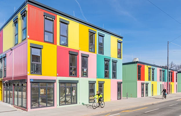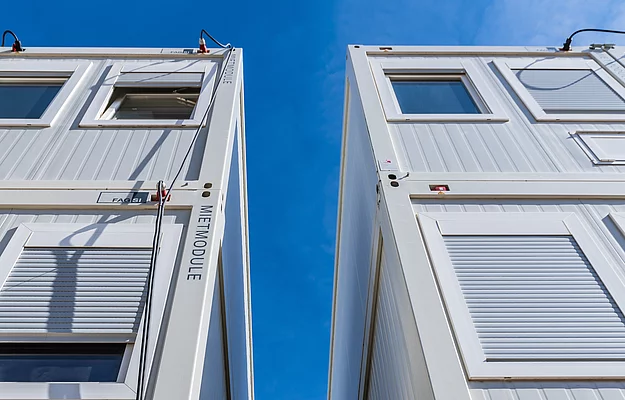 Wir ermöglichen durch unsere standardisierten Containerlösungen mit kurzen Lieferzeiten und einfacher Montage eine schnelle Realisierung temporärer Gebäude.