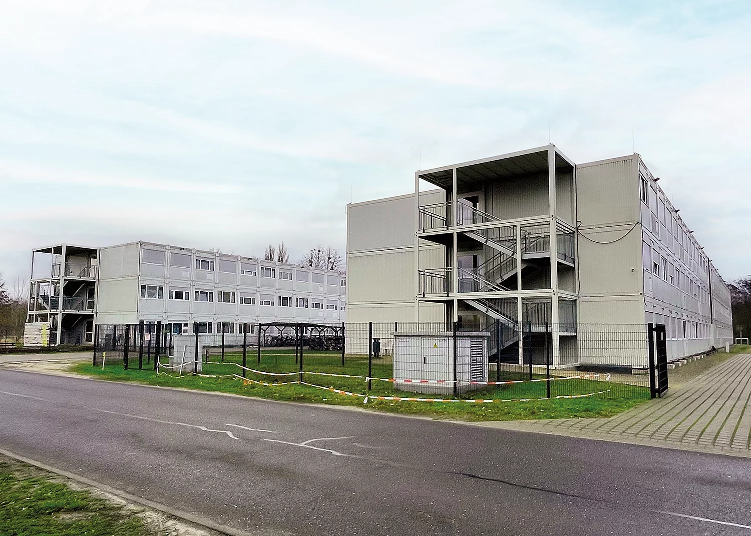 Diese dreigeschossige Containeranlage wird derzeit als Übergangslösung genutzt und bietet mit 234 Containern