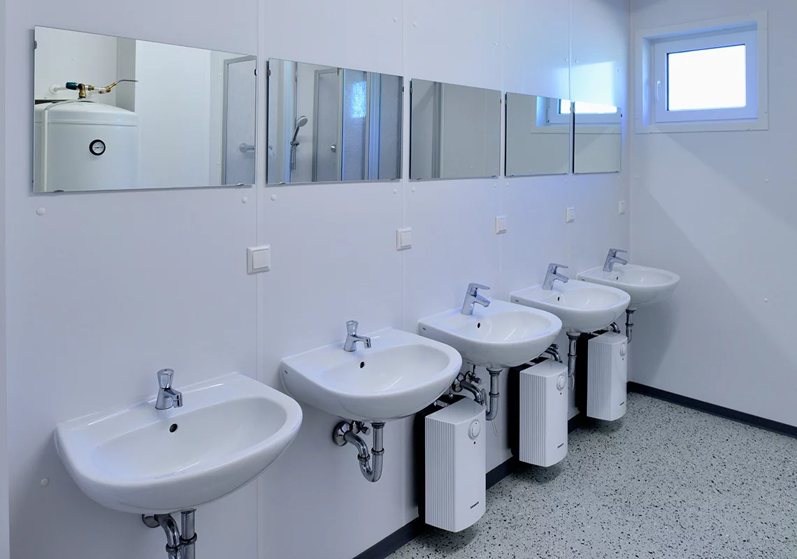 und einer Küche. Die mobilen Kitaräume für Ihren Bedarf können flexibel umgenutzt und versetzt werden.