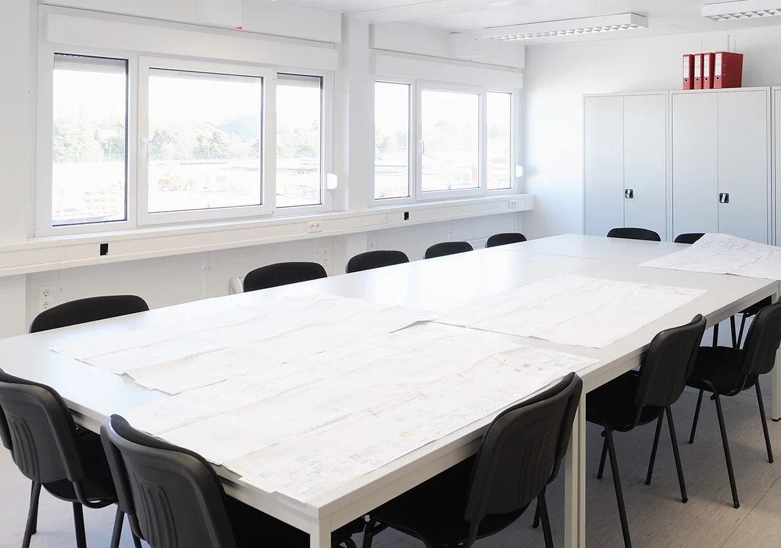 Die Anlage wurde als zweigeschossige Bauleiteranlage inkl. Büro- und Besprechungsräumen sowie Sanitärräumen genutzt.