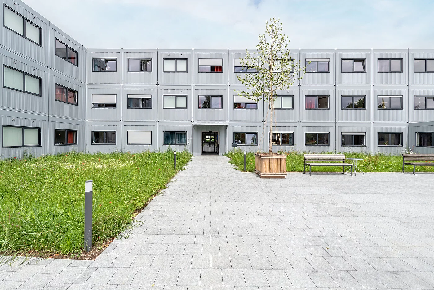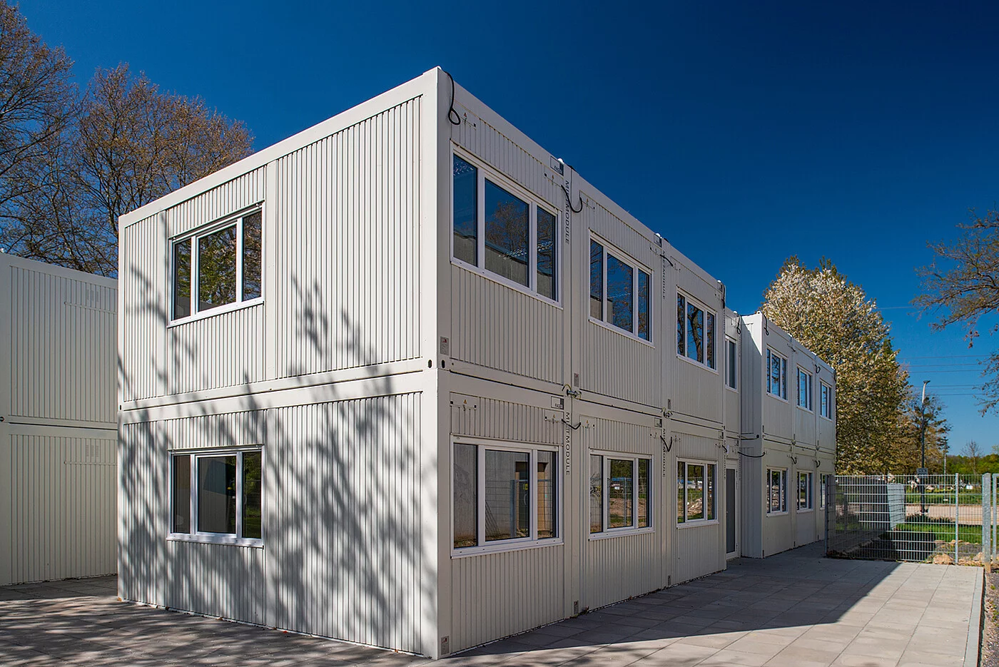 Dank der Containerbauweise lässt sich das Gebäude mit geringem Aufwand an neue Nutzungen anpassen – etwa als Wohnheim oder Büroeinheit.