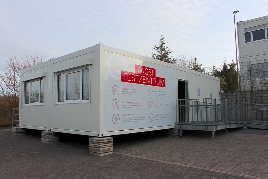 Letzte Woche ist das neue Testzentrum auf dem Werksgelände von FAGSI in Lichtenberg in Betrieb gegangen. Das aus 2 FAGSI Containern bestehende Gebäude wurde nach der Ausarbeitung eines umfassenden Testkonzepts in Rekordzeit errichtet und bildet einen weiteren wichtigen Beitrag zur Eindämmung des Coronavirus.