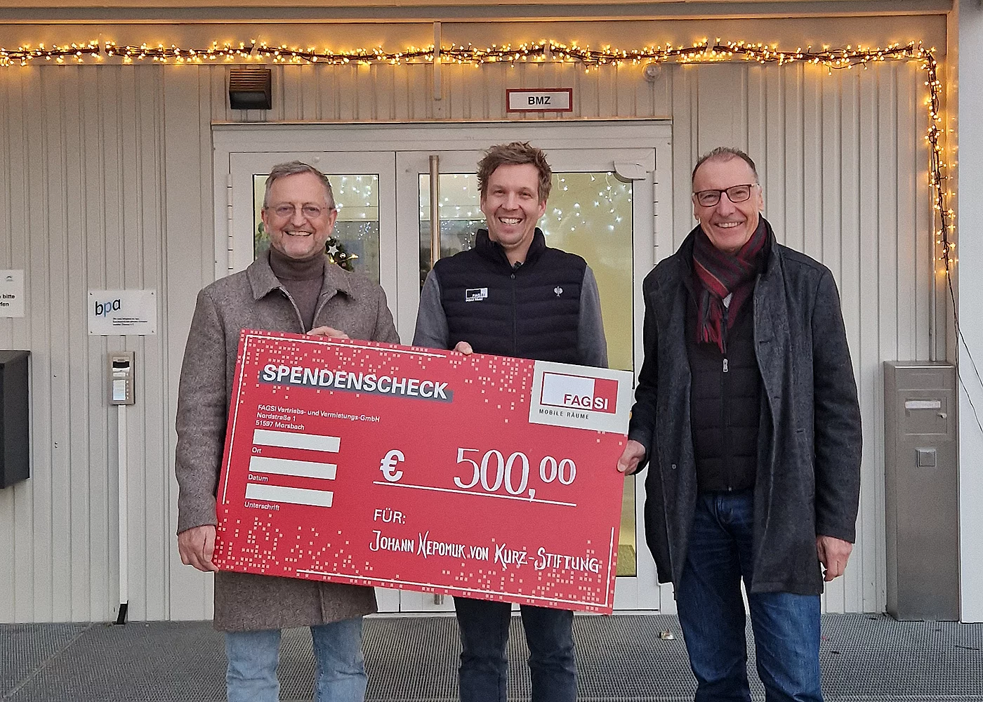 Die Johann Nepomuk von Kurz-Stiftung wurde im Jahr 1991 von der Stiftung Bayerischer Landesschulen für Körperbehinderte gegründet. Ziel war es von Beginn an, körperbehinderten Menschen nach dem Ende der Schulzeit eine verlässliche und langfristige Betreuung bis hin ins hohe Lebensalter zu bieten. 1996 entstand „die Brücke gGmbH“. Diese umfasst heute 40 Förderplätze und 20 Wohnplätze. Sie bietet den Bewohnern ein langfristiges Wohnangebot, welches größtmögliche Selbstständigkeit und Selbstbestimmung bietet. Die Betreuung richtet sich hier individuell an den jeweiligen Bewohner und reicht vom Einbinden in einen geregelten Alltag bis hin zur Bewältigung von komplexen Aufgaben. Neben der Betreuung bietet die Brücke verschiedene Freizeit- und Gruppenaktivitäten an. Ob Kochen, gemeinsam Musik machen, oder Ausflüge, Feste und Ferienfreizeiten. Im Mittelpunkt stehen hier die persönlichen Bedürfnisse und Interessen der Bewohner. Um die Johann Nepomuk von Kurz-Stiftung finanziell zu unterstützen, spendete die Niederlassung FAGSI Süd 500€ direkt an die Stiftung.