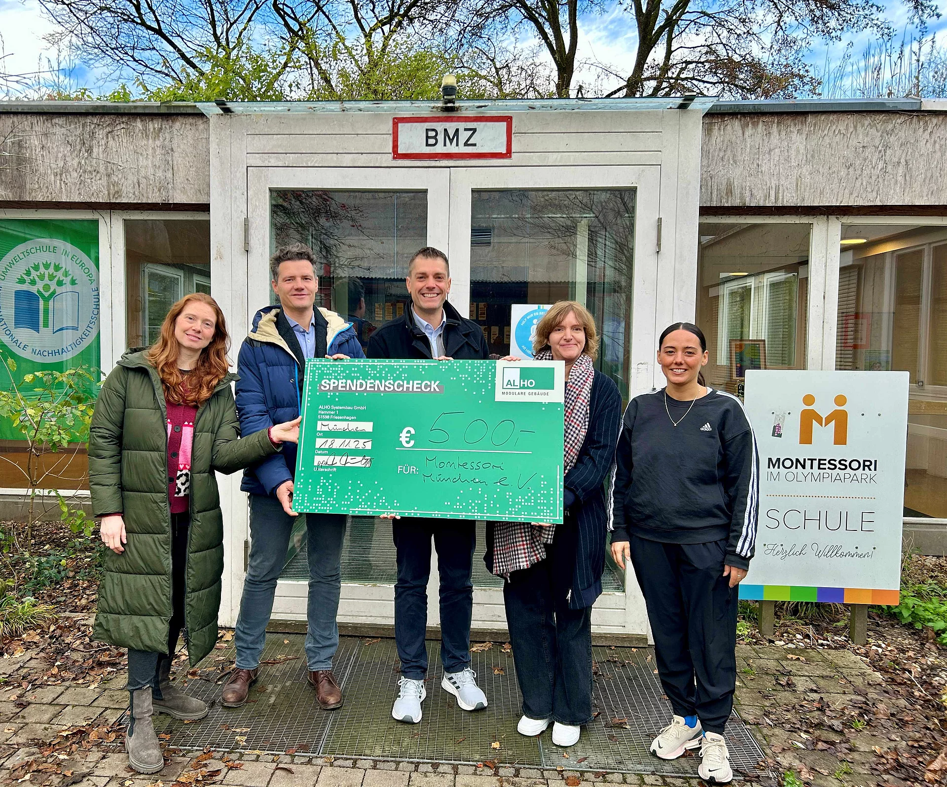 Am 26. April 1966 vergab das Internationale Olympische Komitee (IOC) die XX. Olympischen Sommerspiele 1972 an die Landeshauptstadt München. Für die Planung und Gestaltung des Olympiaparks wurden am Rande des Geländes Gebäude für die Olympia Baugesellschaft errichtet. Seit 1973 werden die unter Ensembleschutz stehenden Räumlichkeiten durch den Montessori München e.V. als Kinderhaus und staatl. genehmigte Schule für Kinder und Jugendliche von der 1. bis zur 10. Klasse betrieben. Aktuell wird die Turnhalle der Schule saniert, die aufgrund eines maroden Daches nicht mehr genutzt werden darf. Ein Großteil wird vom Freistaat Bayern gefördert, der Verein muss jedoch noch eine beachtliche Summe selbst aufbringen. Hierfür ist jede Spende hilfreich! Daher freuen sich Vorständin Anne Tyroller, Anna Frisch-Onken, Leitung Gebäude und Sanierung, und Sportlehrerin Leda Baksci sehr über den 500 Euro Scheck, der ALHO Niederlassung Süd.