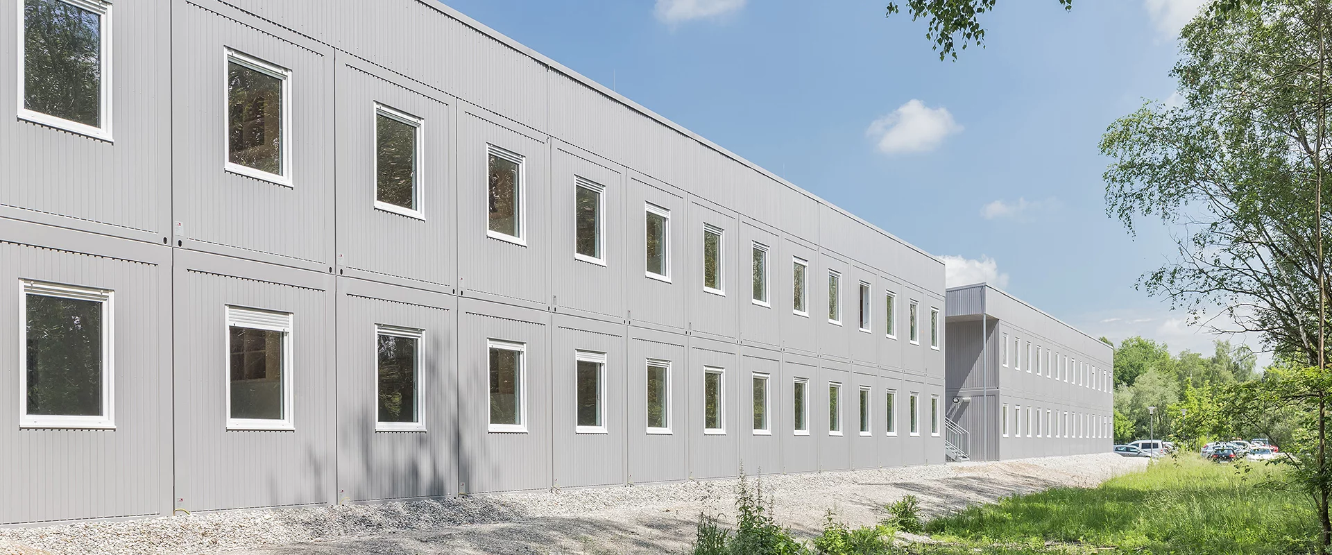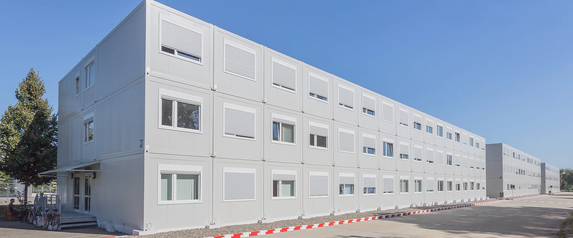 Temporäre Wohngebäude in Containerbauweise bestehen aus vorgefertigten Containern, die schnell vor Ort montiert und ebenso unkompliziert wieder demontiert oder umgebaut werden können. Sie dienen als kurzfristige, flexible Wohnlösung, etwa für Notunterkünfte, Übergangswohnheime oder temporäre Wohnquartiere.