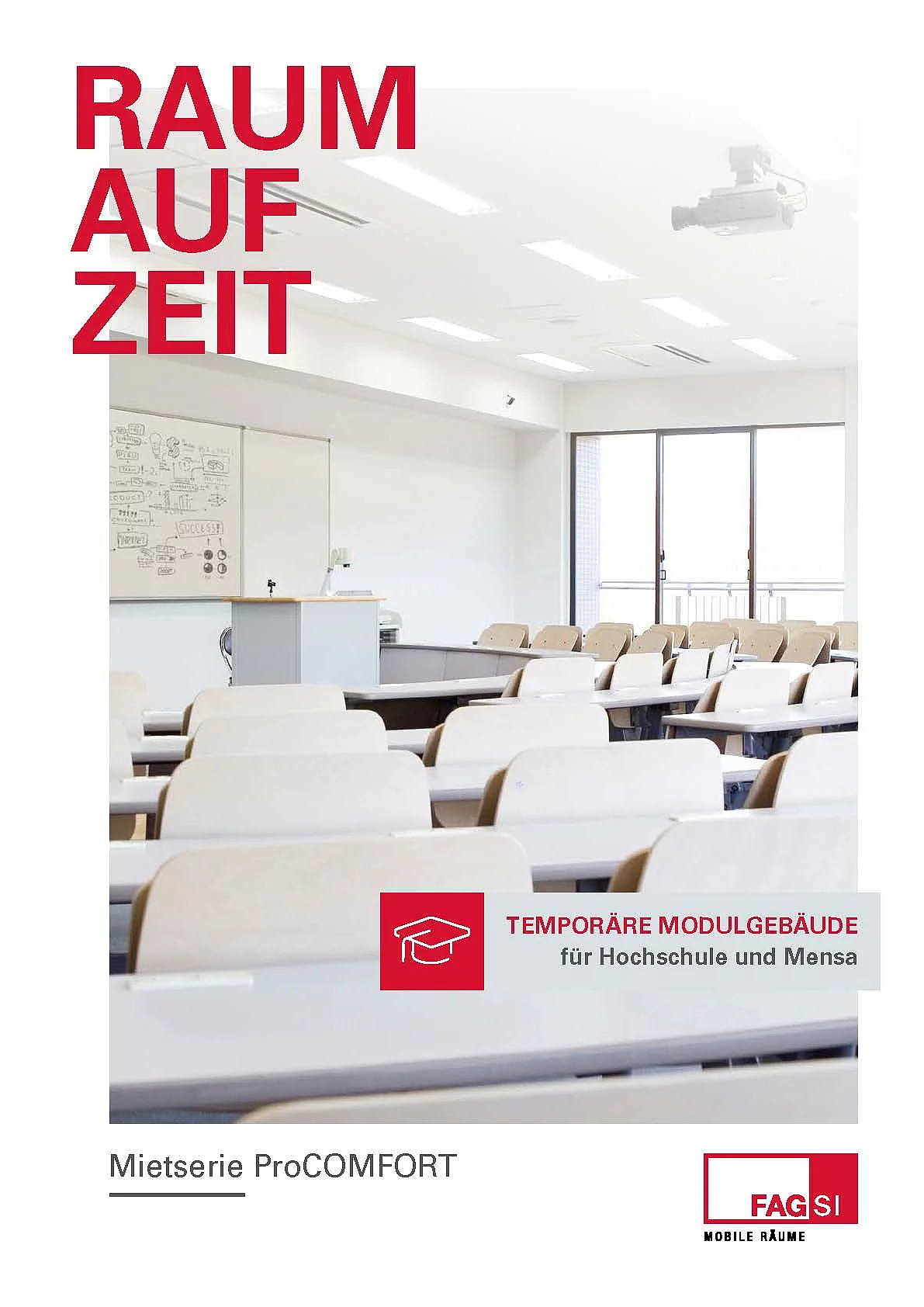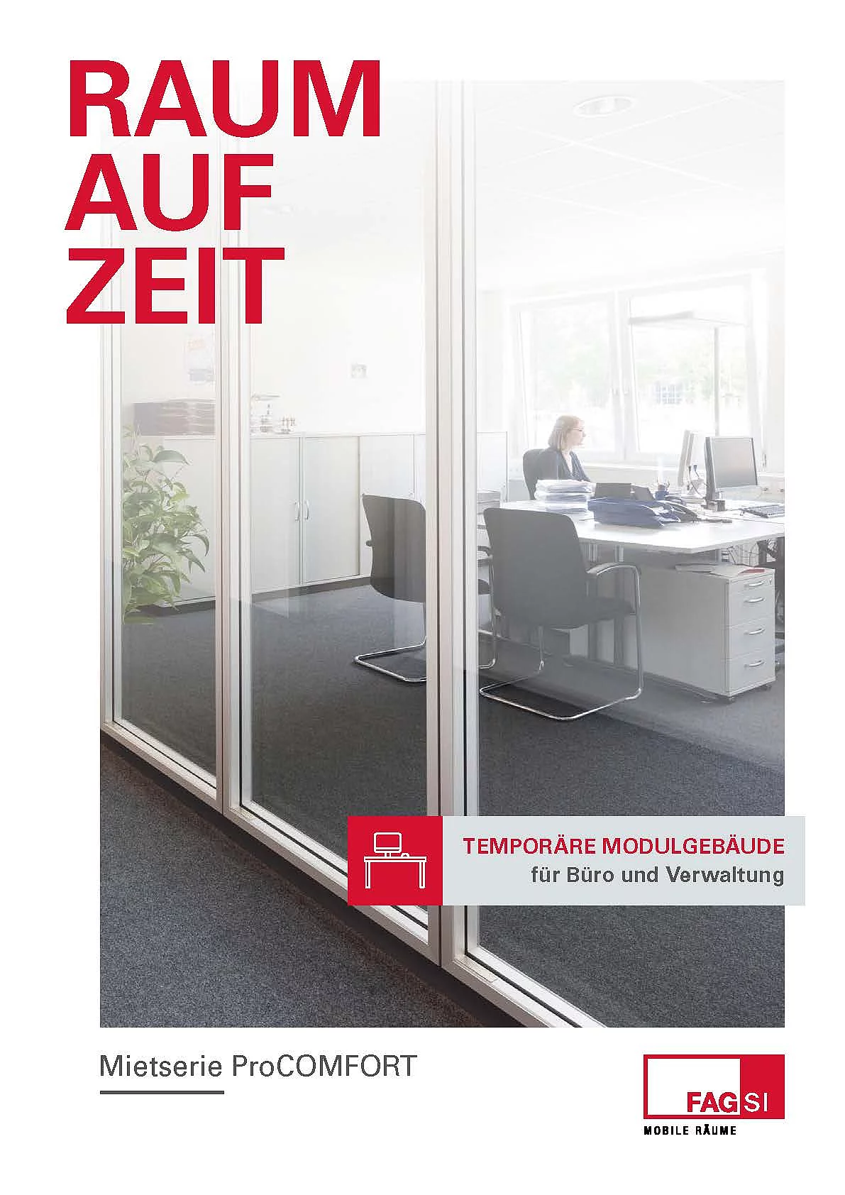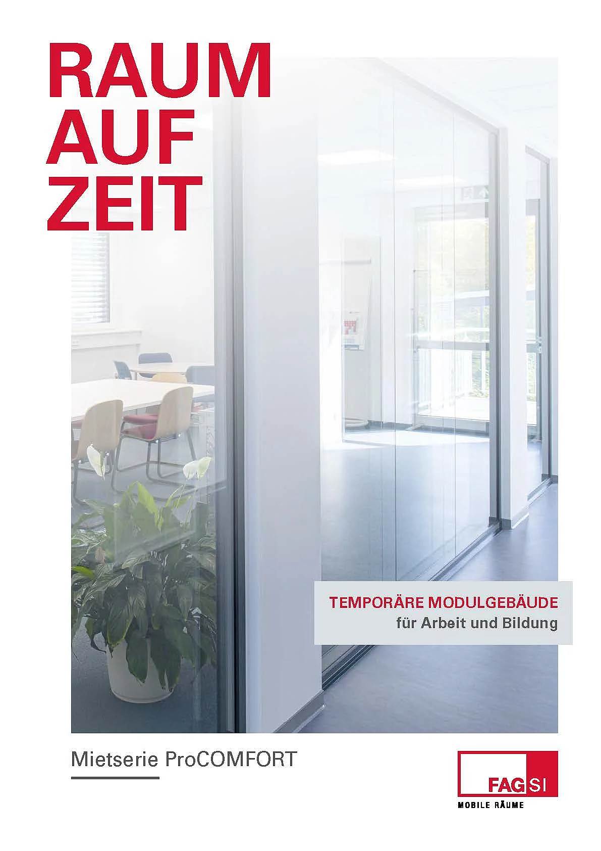 Mit der Mietserie ProCOMFORT setzen Sie auf temporäre Gebäude der Spitzenklasse: Alle Vorteile des Modulbaus – maximale Flexibilität, hoher Komfort und modernes Design – stehen Ihnen zur Verfügung, ohne langfristige Kapitalbindung. Dank unseres intelligenten Baukastensystems lassen sich individuelle, flexible und kosteneffiziente Lösungen realisieren, die höchsten Standards in Ausbau, Ausstattung und Design entsprechen. Im Vergleich zur klassischen Massivbauweise überzeugt ProCOMFORT durch schnelle Umsetzung, transparente Kosten und absolute Termintreue.