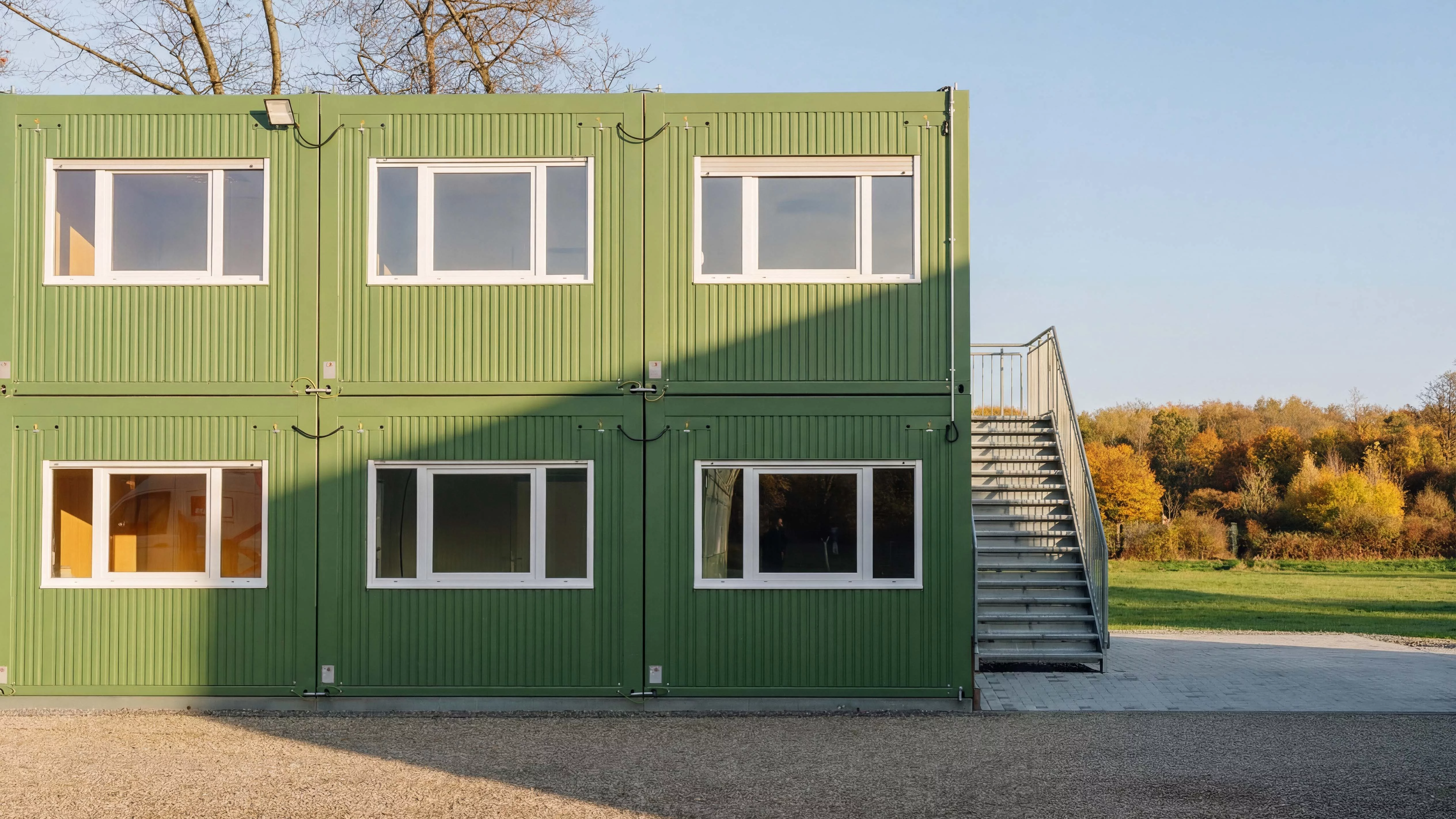 Die zentrale Unterbringungseinrichtung besteht aus 476 Containern der Baureihe Pro BASIC die aufgrund ihrer hohen Schallschutzstandards optimale Voraussetzungen für eine komfortable Unterbringung bieten. Insgesamt neun Gebäude strukturieren das Areal, darunter vier Wohngebäude mit unterschiedlich ausgestatteten Einheiten für Familien sowie für Einzelpersonen. Alle Wohngebäude verfügen über barrierefreie Sanitäranlagen und ermöglichen damit Menschen in verschiedensten Lebenssituationen ein angemessenes und zugängliches Wohnen. Ein Sozialgebäude mit integrierter Sporthalle schafft Raum für Begegnung, Austausch und gemeinschaftlichen Aktivitäten. Als zentraler Treffpunkt fungiert die rund 900 m² große Mensa, das Herzstück der Anlage. Sie gewährleistet durch ihre große Küche inklusive jeglichen Technischen Anlagen und Kühlräumen die tägliche Versorgung der Bewohner. Ergänzt wird das Areal durch eine Krankenstation, einen Wachdienst und einem Verwaltungsgebäude inklusive Büros für den Betreiber und die Bezirksregierung. Als Generalunternehmer übernahm FAGSI die ganzheitliche Projektverantwortung und begleitete sowohl den Auftraggeber als auch die Stadt Haltern am See von der ersten Planungsphase bis zur schlüsselfertigen Übergabe. Auch über den Projektabschluss hinaus steht FAGSI weiterhin als verlässlicher Ansprechpartner zur Verfügung.
