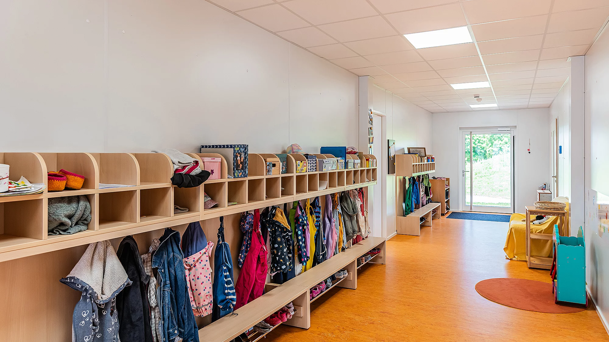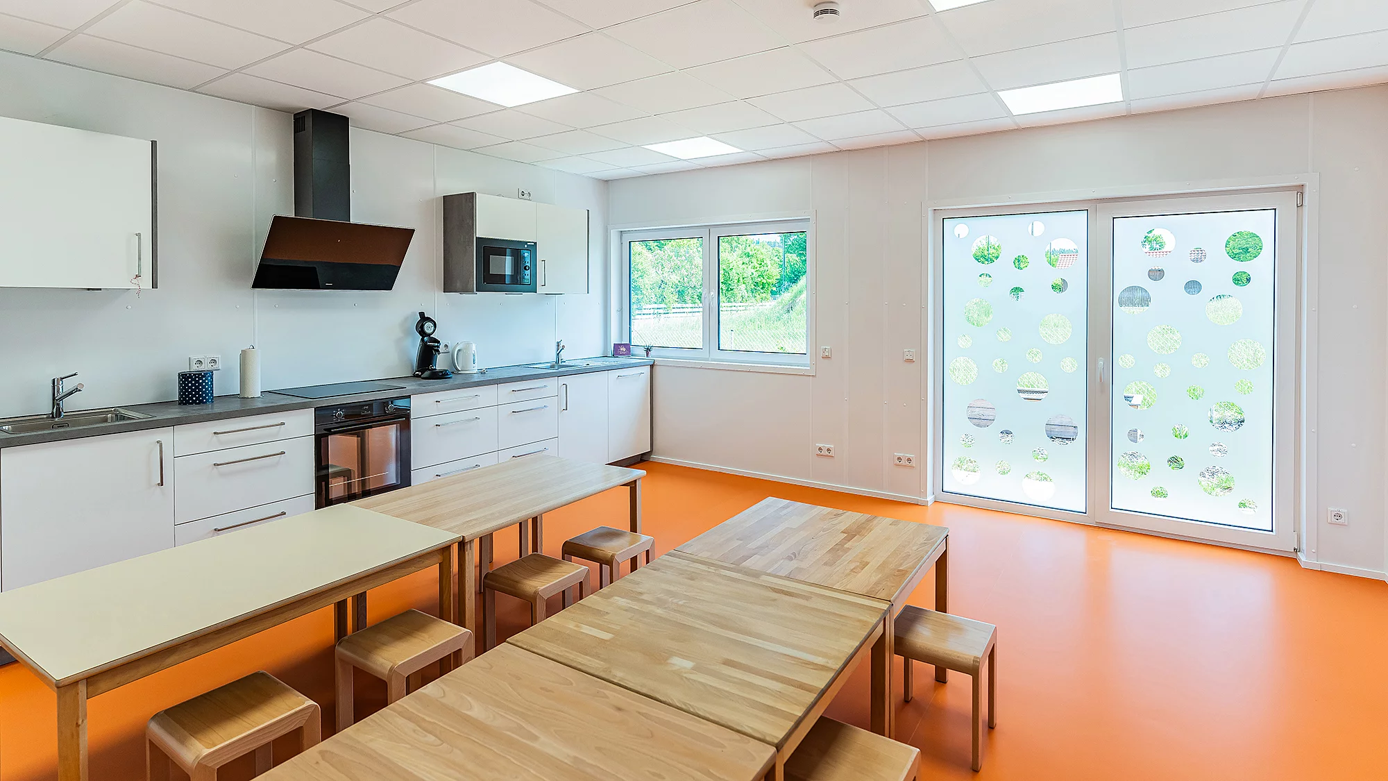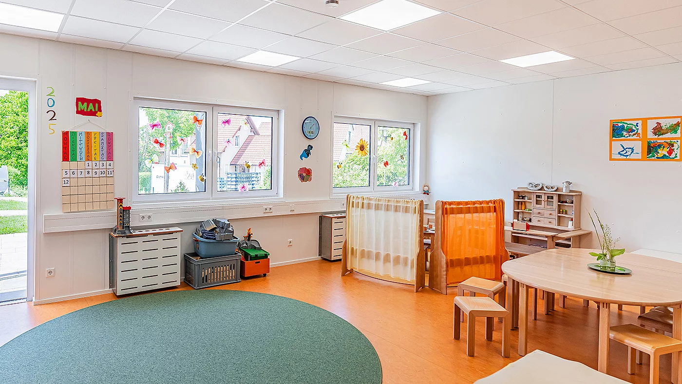 Mit dem Neubau der Kita St. Martin in Aresing ist ein moderner Bildungs- und Begegnungsort entstanden, der Pädagogik, Flexibilität und Umweltbewusstsein in Einklang bringt. Auf einer Fläche von 333qm wurde aus 19 Containern ein eingeschossiger Kindergarten errichtet. Neben einer ansprechenden Außengestaltung hat der Kindergarten nun zwei große Küchen, zwei Gruppenräume inklusive Schlafsaal, einen Bewegungsraum und ein großes Glasvordach, um eine helle fröhliche Atmosphäre zu gewährleisten. Für den Neubau kamen FAGSI ProENERGY Container zum Einsatz, die alle Anforderungen des Gebäudeenergiegesetzes (GEG) erfüllen. Durch den Einsatz regenerativer Energien und moderner Heizungs- und Anlagentechnik entsteht ein energieeffizientes Gebäude mit geringen Betriebskosten. Besonders für Kindergärten bedeutet dies ein nachhaltiges und gesundes Raumklima, das den Kindern eine angenehme Lern- und Spielatmosphäre bietet.