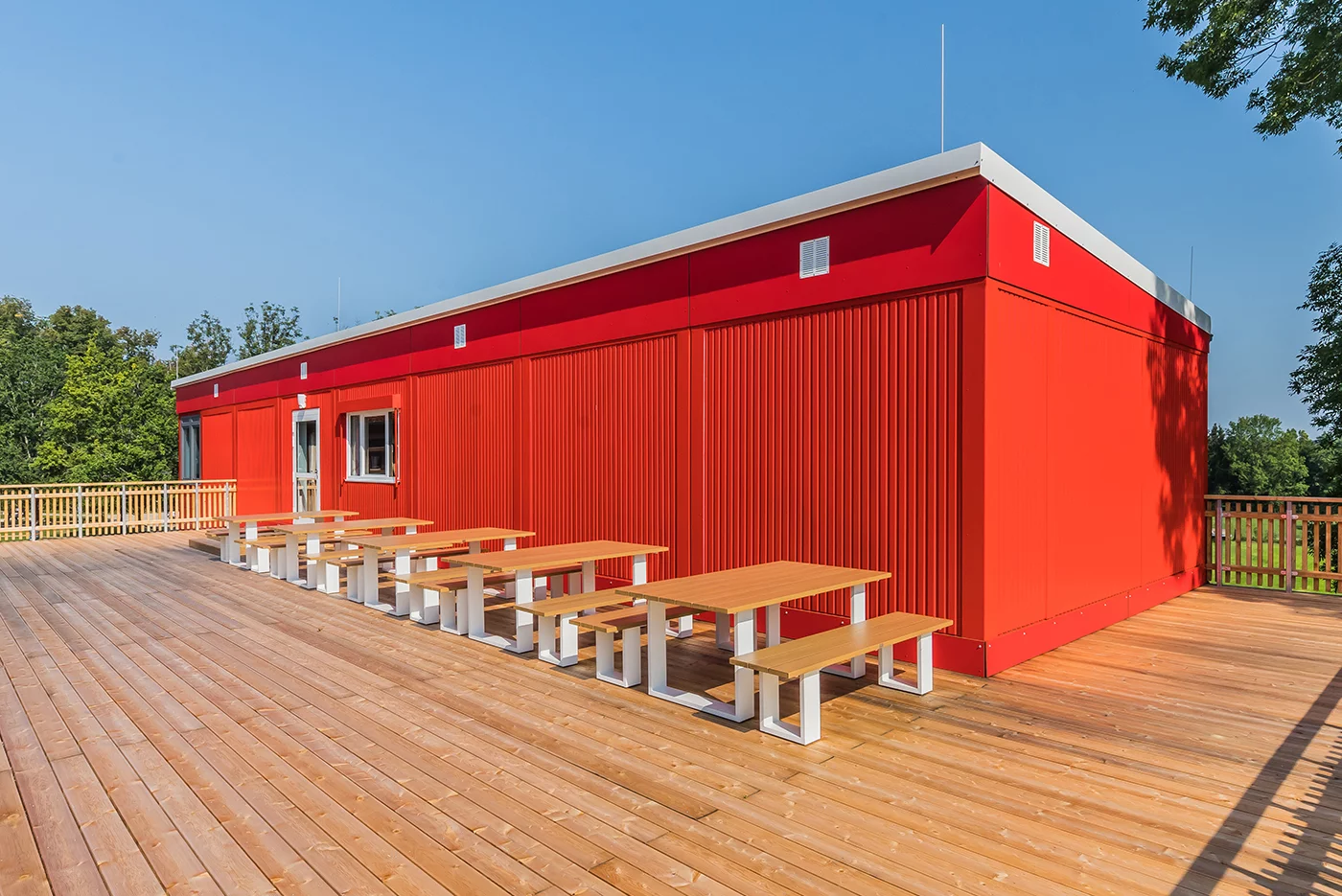 Mehr Klassenzimmer, mehr Schüler und digitales Lernen: Mit dem sogenannten „Masterplan 2035“ will die Munich International School in Starnberg expandieren und sich fit für die Zukunft machen. Auf dem Schulgelände sind in den nächsten Jahren darum mehrere Neu- und Umbauten geplant. Bis diese genutzt werden können, stehen dem Lehrkörper und den rund 1.300 Schülerinnen und Schülern noch einige räumliche Veränderungen bevor. So findet beispielsweise die Schulbibliothek für die Dauer der Neubaumaßnahmen in einem temporären FAGSI Containergebäude Platz: 1 Tag Fundamentarbeiten, 2 Tage Montage und 3 Wochen Ausbau der insgesamt 24 Raumelemente und das qualitativ hochwertige Gebäude war fertig.