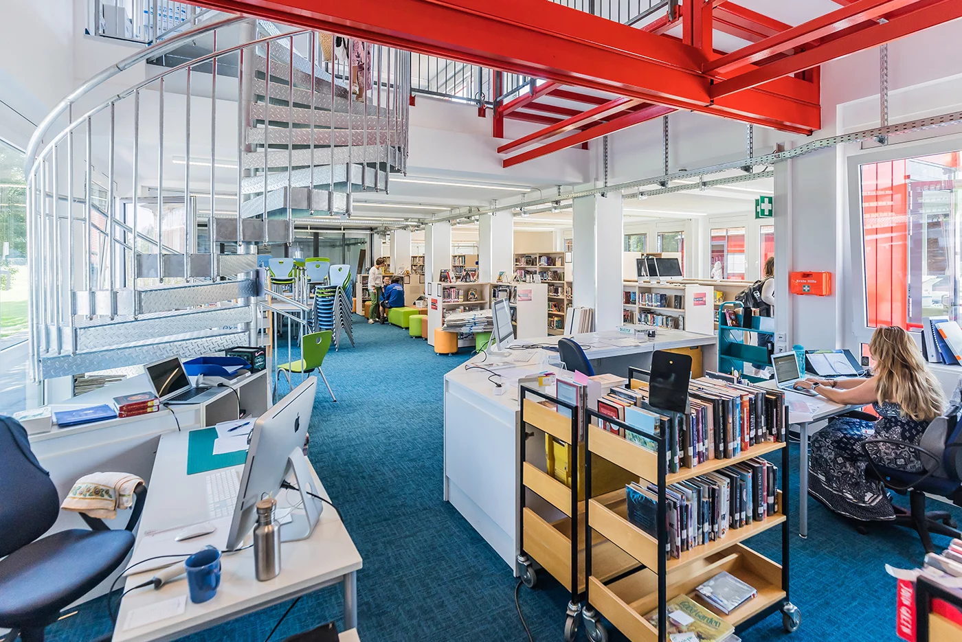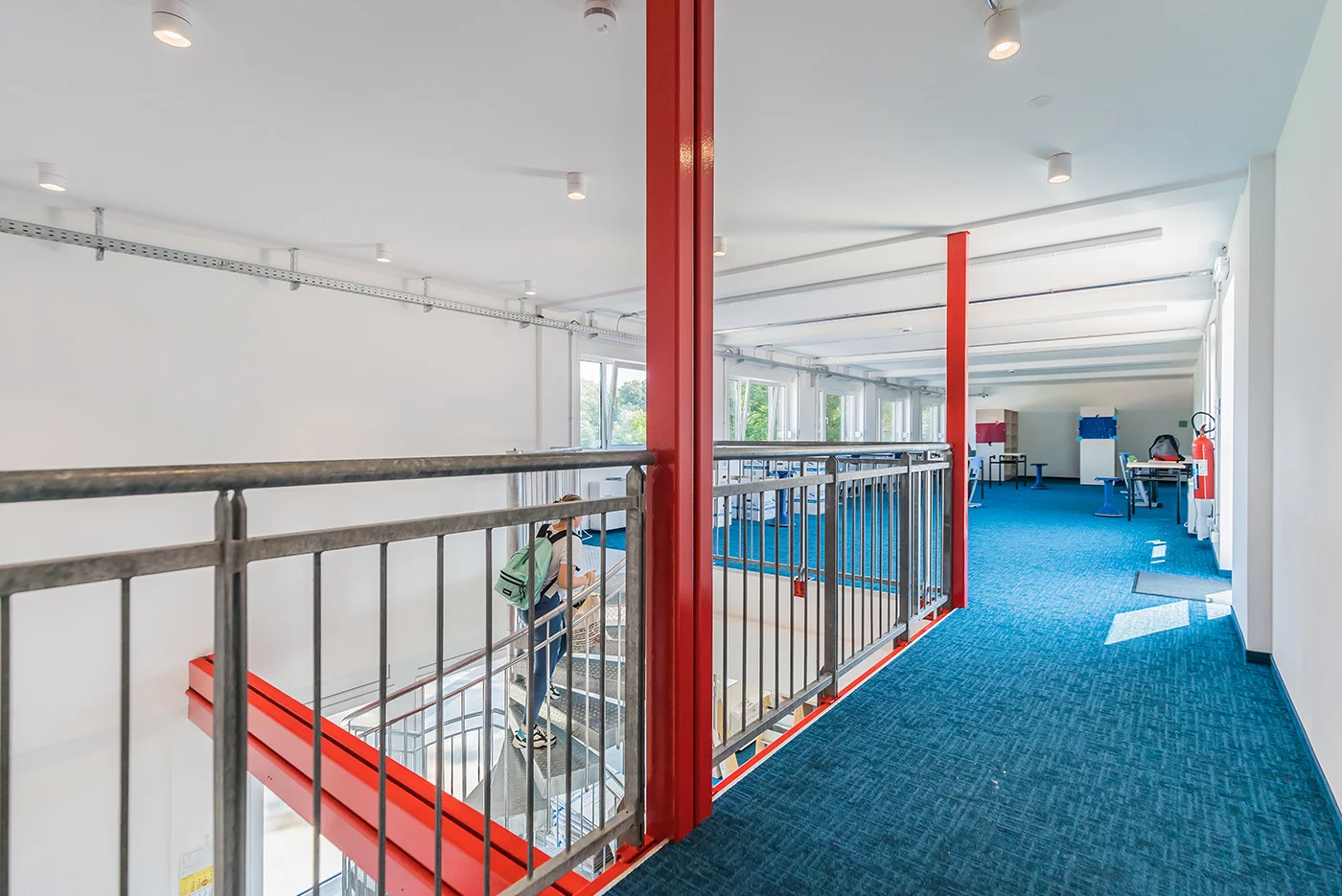 Ein Vorteil des Bauens mit Raumcontainern faszinierte die Bauherren besonders und ist einer der Gründe, weswegen sie sich begeistert für die Containerbauweise entscheiden konnten. Mit dem temporären Bibliotheks- Bauwerk bleibt die Schulleitung auch in Zukunft sehr flexibel. Denn es kann nicht nur ohne große Probleme seinen Standort auf dem Campus wechseln, sondern auch schnell für neue, gänzlich andere Einsatzzwecke umgerüstet werden. Wie einfach, das erfuhr die Schulleitung dann schon in der Montagephase: Mit der jahrzehntelangen Erfahrung von FAGSI – seit 1980 als eigenständiges Unternehmen innerhalb der ALHO-Gruppe tätig – waren auch kurzfristige Veränderungen auf der Baustelle kein Problem.