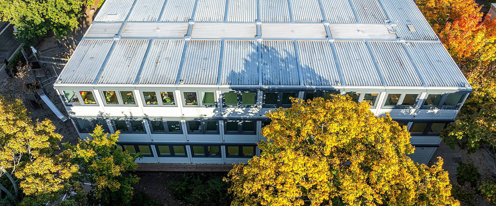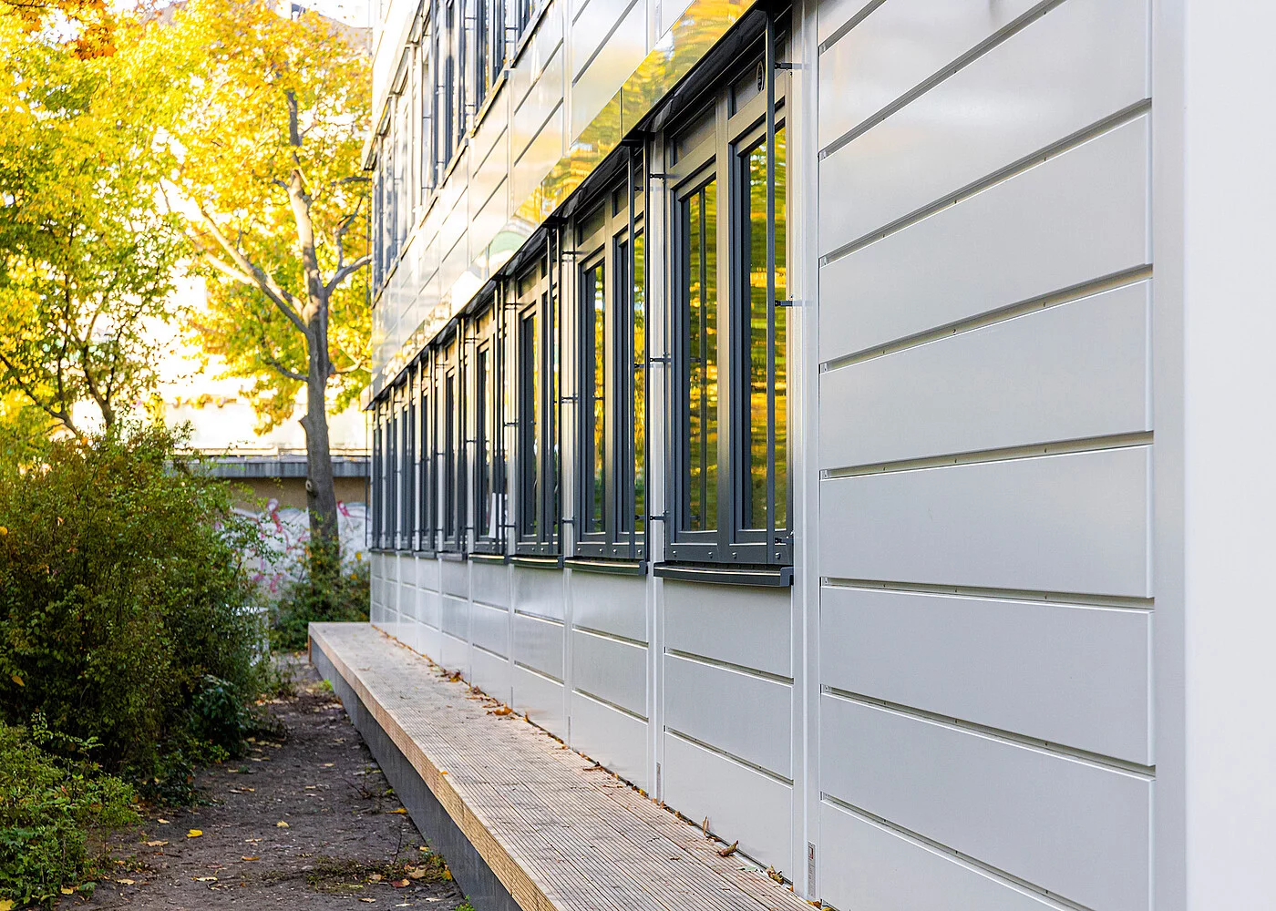 Die ProEnergy Interimsanlage befindet sich auf dem vorhandenen Schulgelände und wird den Schulbetrieb während der fünfjährigen Sanierungs- und Erweiterungsphase des Bestandsgebäudes sicherstellen. Insgesamt wurden mit 75 Containereinheiten drei Geschosse errichtet, die auf rund 1.909 m² Nutzfläche ausreichend Raum für Klassen-, Gruppen- und Nebenräume bieten. Die Übergangslösung wurde als schlüsselfertige Kaufanlage geplant und ermöglicht durch ihre eigenständige Struktur den unterbrechungsfreien Fortbestand des Schulbetriebs. Ein besonderes Highlight stellt die umfangreiche Sockelverkleidung mit integrierten Sitzgelegenheiten dar – ein Mehrwert für Schüler und Lehrkräfte im Pausen- und Freizeitbereich. Die Bauzeit betrug nur sieben Wochen und wurde noch in den Sommerferien 2024 fertiggestellt, sodass der Schulbetrieb zum neuen Schuljahr reibungslos starten konnte. Mit diesem Projekt trägt FAGSI maßgeblich zur Schaffung von 89 dringend benötigten Schulplätzen bei und unterstützt die Stadt Berlin, moderne Bildung trotz umfangreicher Bauarbeiten dauerhaft sicherzustellen.