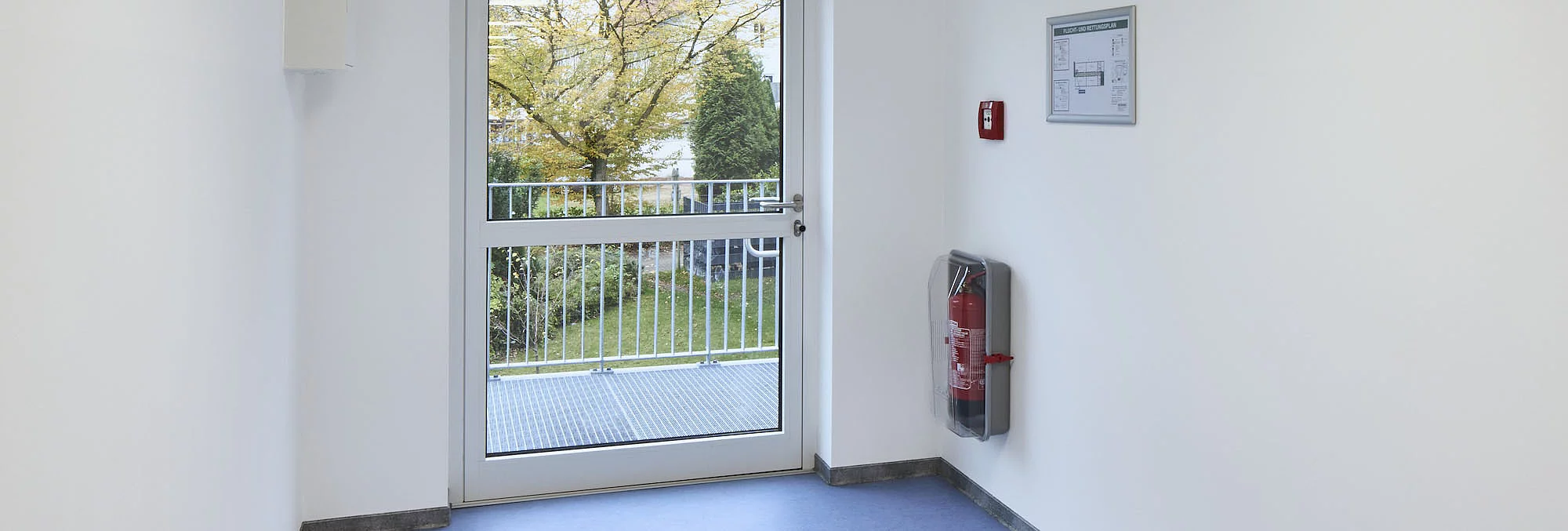Cheminements et sorties d'évacuation qui doivent rester lisibles et libres d'encombrement.